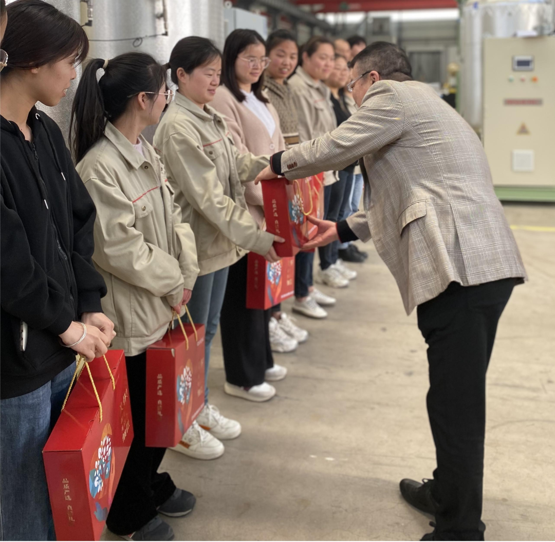 在支部书记的带领下,公司党员及领导层代表亲自去到生产车间,一一送上提前备好的小礼品和感谢信。